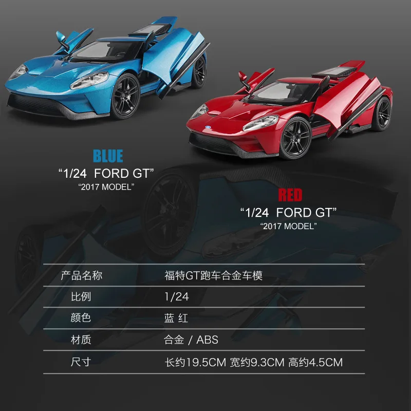 1:24 Scale Ford GT Sports Car Children Toy Simulation Inertia Metal Racing Collection Decoration Di